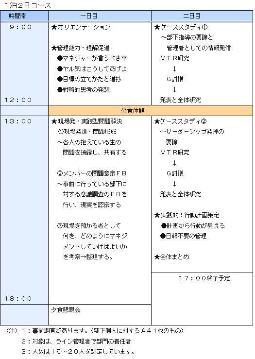本講座では、特にライン管理者に焦点を当て、どのようなマネジメント行動をとることが、部下の士気を高め、全社一丸最終的な業績アップに直結するのか、を徹底的に考察します。ケーススタディを中心に実践的に体得して頂くことを主眼としています。