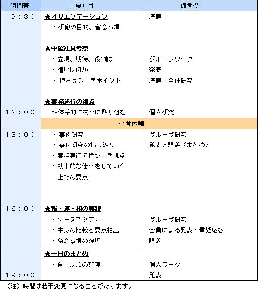 中堅社員としての自覚と責任感のもと、業務の改善・革新や問題解決を中心になって進めていくための基本的な考え方、取り組み方を実践的に学ぶ。